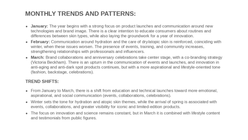Ideally, review competitor data monthly to detect changes, and do a deeper review quarterly with full-year context. One-off analyses without historical data are useful but limited: the interesting stuff shows up when you can tell whether something is a trend or a one-off.