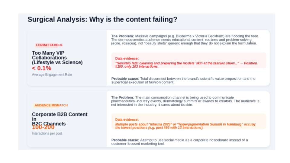 For quantitative performance analysis, 2 or 3 direct competitors is enough. For qualitative analysis (content trends, topic gaps, emerging formats), it's worth broadening the scope to 5 or more sector brands, including reference brands that aren't direct competitors.